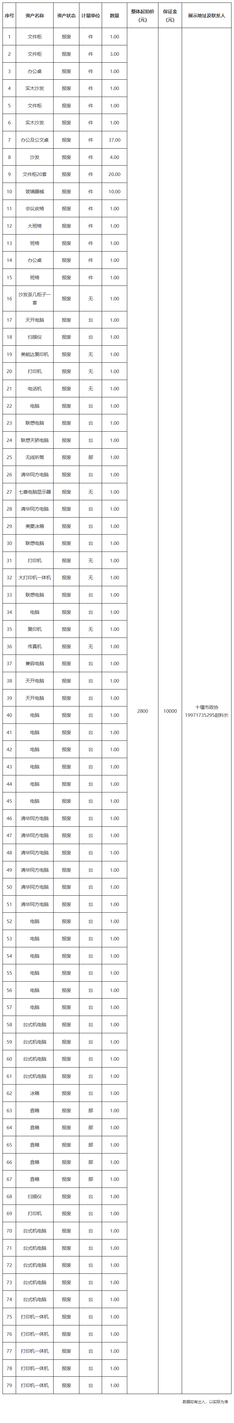 2.中國(guó)人民政治協(xié)商會(huì)議湖北省十堰市委員會(huì)報(bào)廢資產(chǎn):