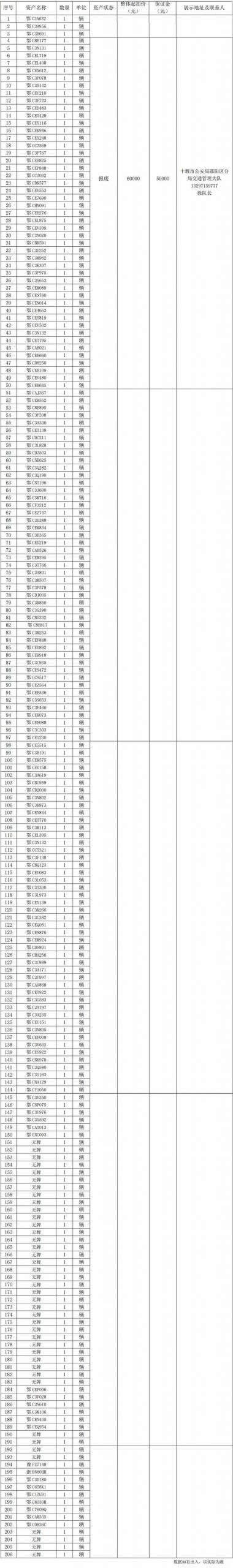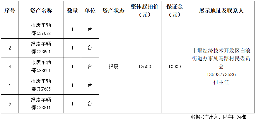 4.湖北省十堰經(jīng)濟(jì)技術(shù)開發(fā)區(qū)白浪街道辦事處馬路村民委員會(huì)報(bào)廢車輛: