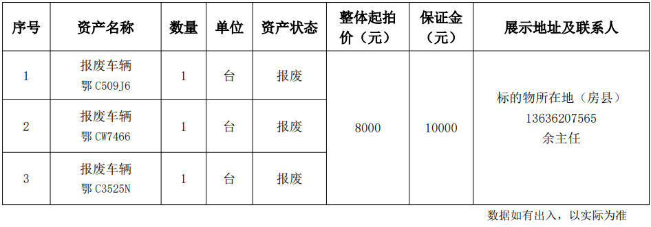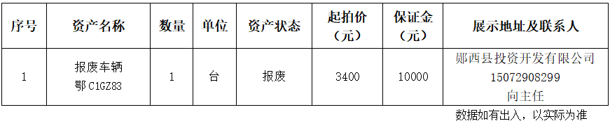 6.湖北省十堰市鄖西縣投資開發(fā)有限公司報(bào)廢車輛: