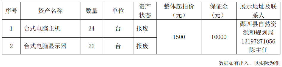 1.湖北省十堰市鄖西縣自然資源和規(guī)劃局報(bào)廢資產(chǎn):